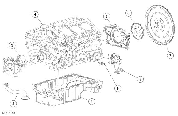 NOTICE: During engine repair procedures, cleanliness is extremely important. Any foreign material, including any material created while cleaning gasket surfaces that enters the oil passages, coolant passages or the oil pan, may cause engine failure.