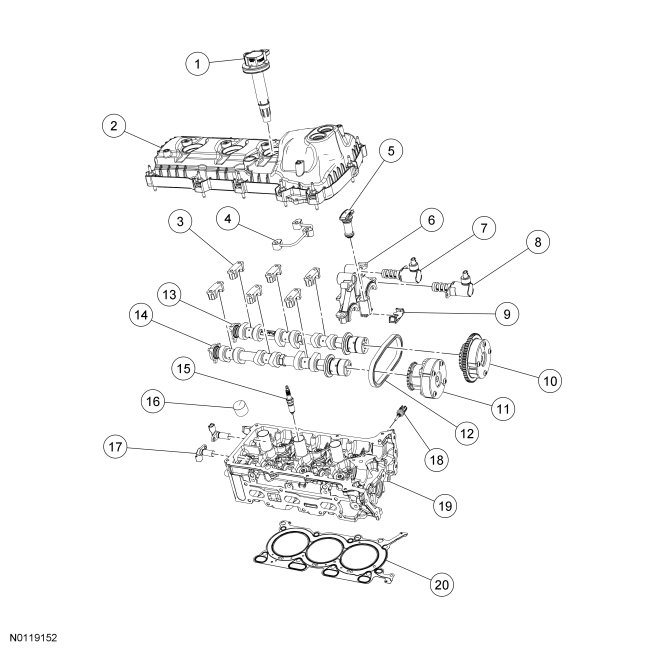 61. NOTE: The 2 VCT (Variable Camshaft Timing) oil control solenoids are removed for clarity.