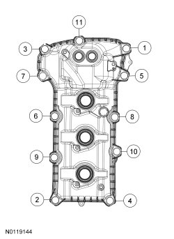 NOTE: If the valve cover is not installed and the fasteners tightened within 4 minutes, the sealant must be removed and the sealing area cleaned. To clean the sealing area, use silicone gasket remover and metal surface prep. Failure to follow this procedure can cause future oil leakage.