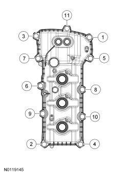 - Tighten in the sequence shown to 10 Nm (89 lb-in).