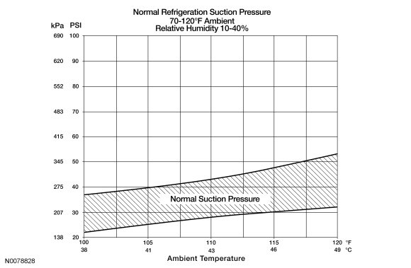 NOTE: The system performance can be evaluated and diagnosed by analysis of the compressor suction and discharge pressures. The following procedure is used to determine if the system is operating at normal pressures.