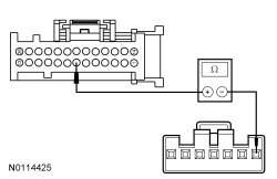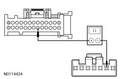 - Measure the resistance between HVAC module C228A-21, circuit VH436 (YE/VT), harness side and HVAC module C228A-23, circuit RH111 (GY/BU), harness side.