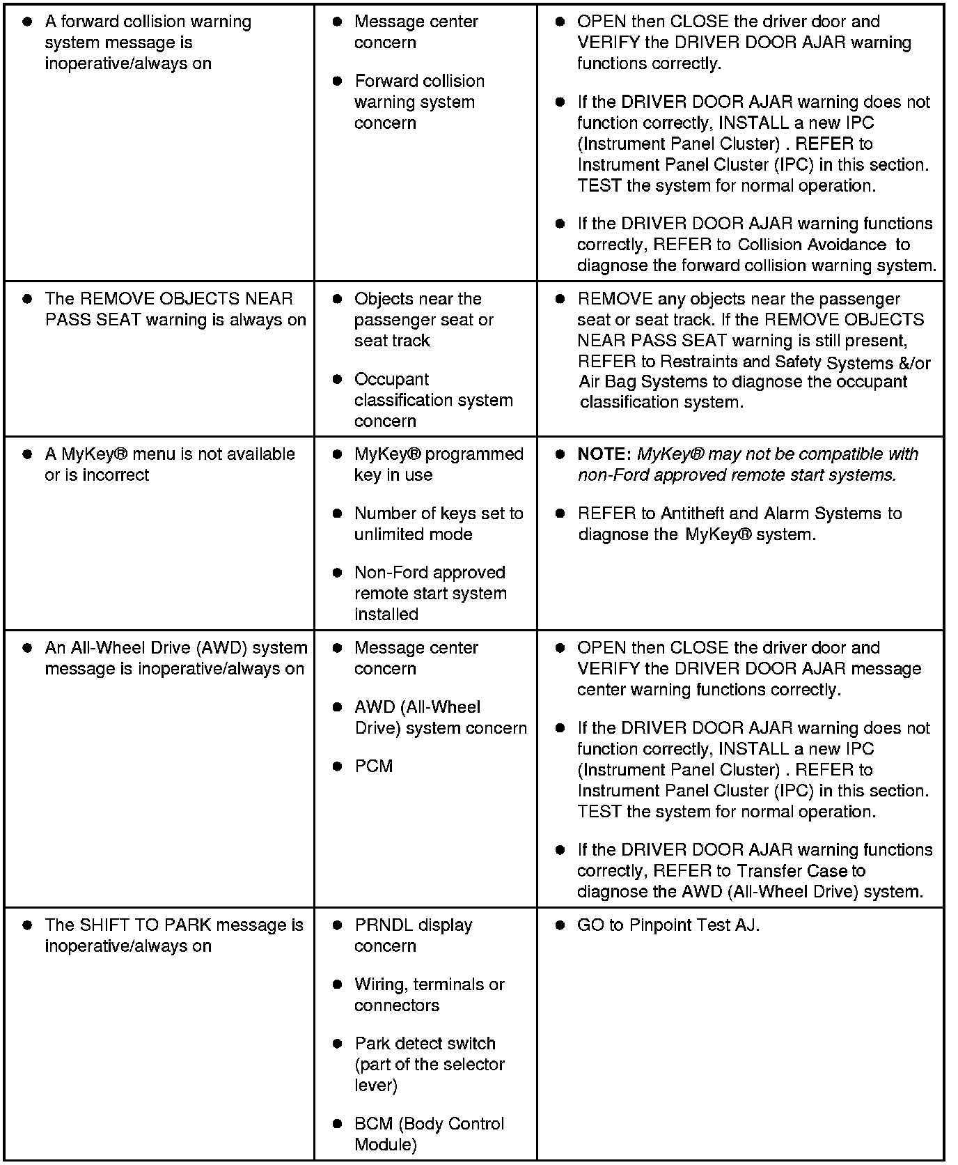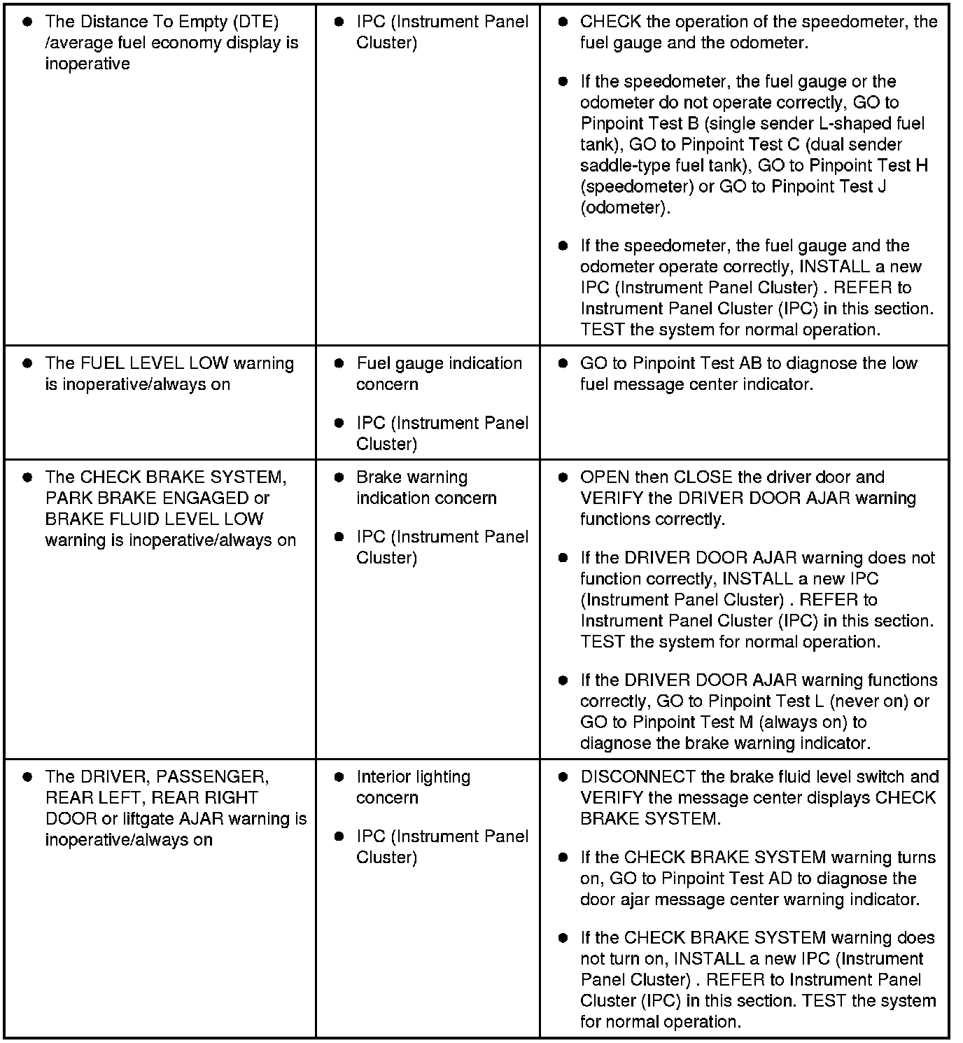 Instrumentation, Message Center and Warning Chimes