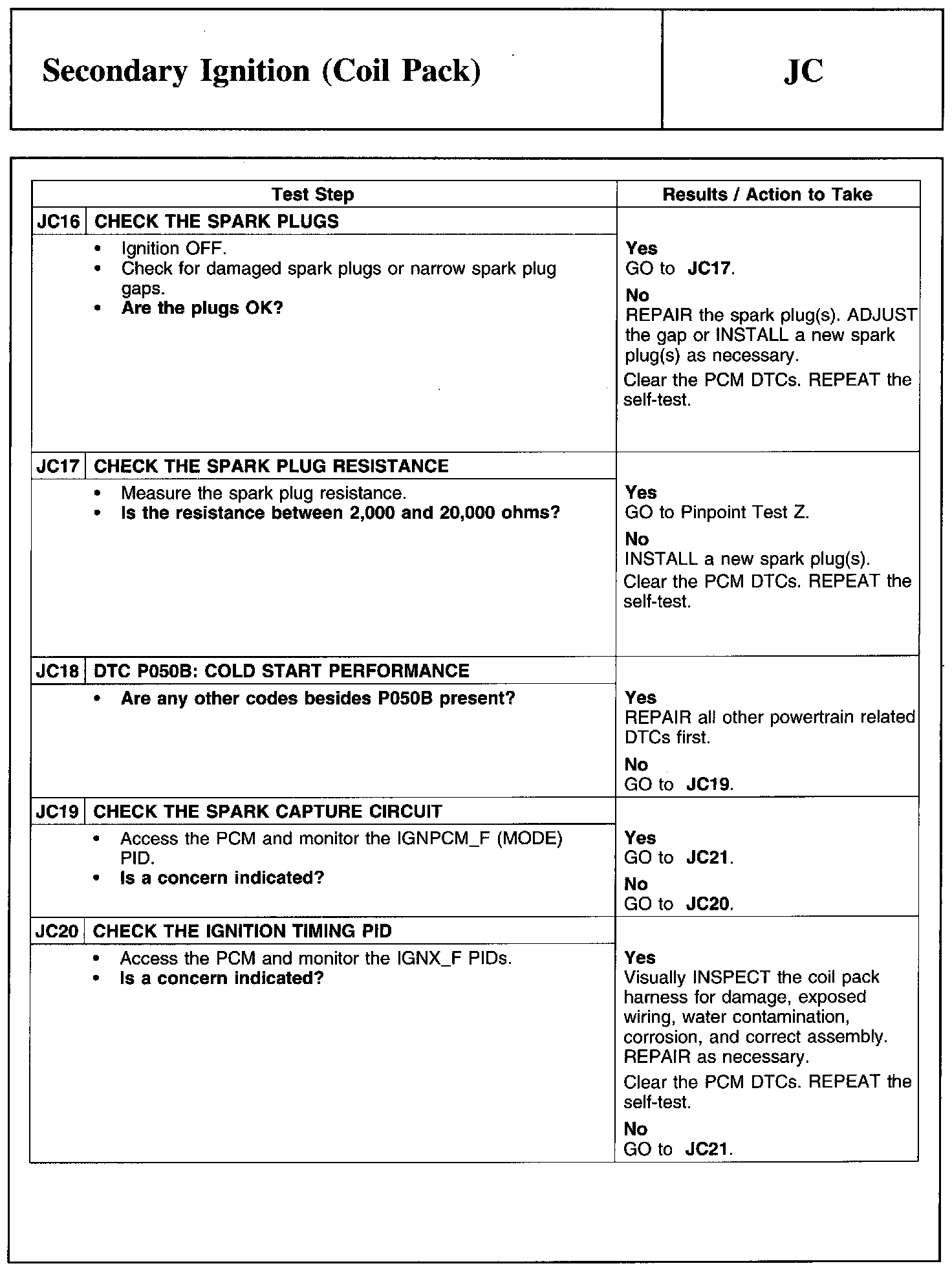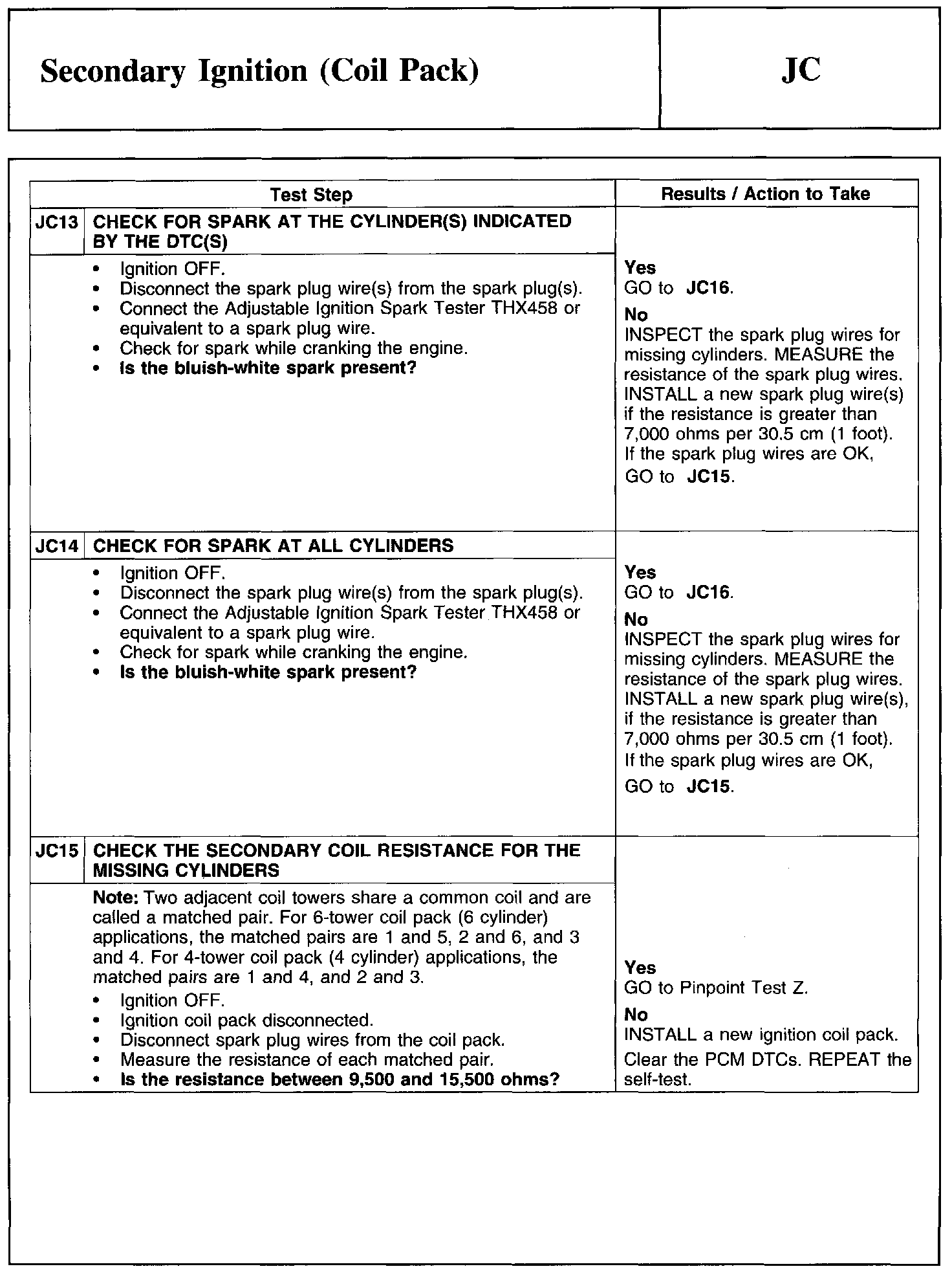 PINPOINT TEST JC: SECONDARY IGNITION (COIL PACK)