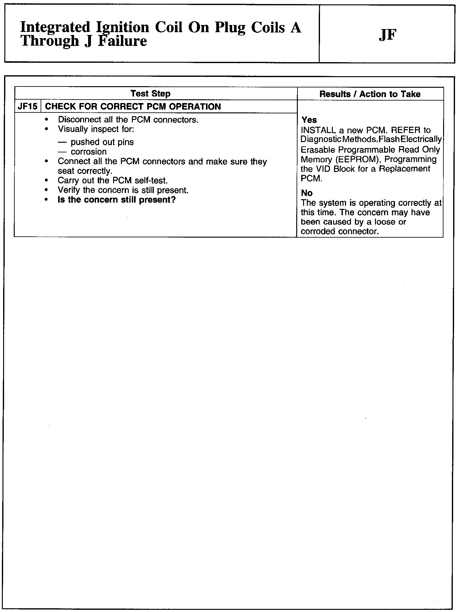 Test JF: Integrated Ignition Coil On Plug Coils A Through J Failure
