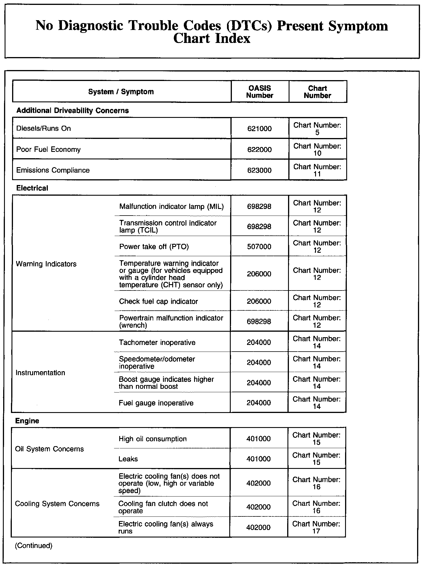 No Diagnostic Trouble Codes (DTCs) Present Symptom Chart Index (Part 2):