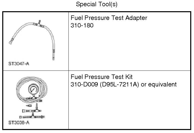 Test the fuel system pressure to make sure it is within the specified range. For additional information, refer to Specifications.