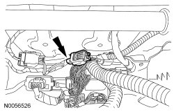 12. NOTICE: Do not pull the passenger Safety Canopy(R) module electrical connector out by the locking button. Damage to the locking button may occur.