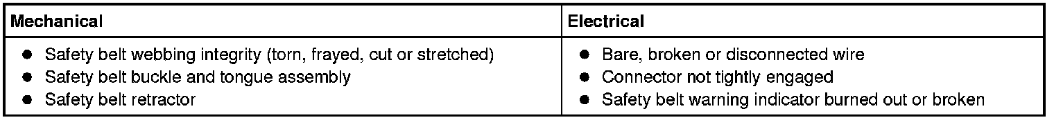 4. If the concern remains after the inspection, determine the symptom. GO to Symptom Chart. Safety Belt System