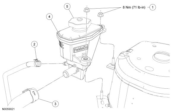 1. Using a suitable suction device, remove the power steering fluid from the fluid reservoir.