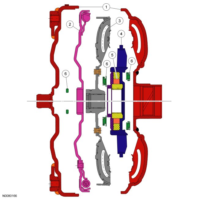 The Torque Converter Clutch (TCC) connects the torque converter housing to the damper when the TCC (Torque Converter Clutch) is applied.