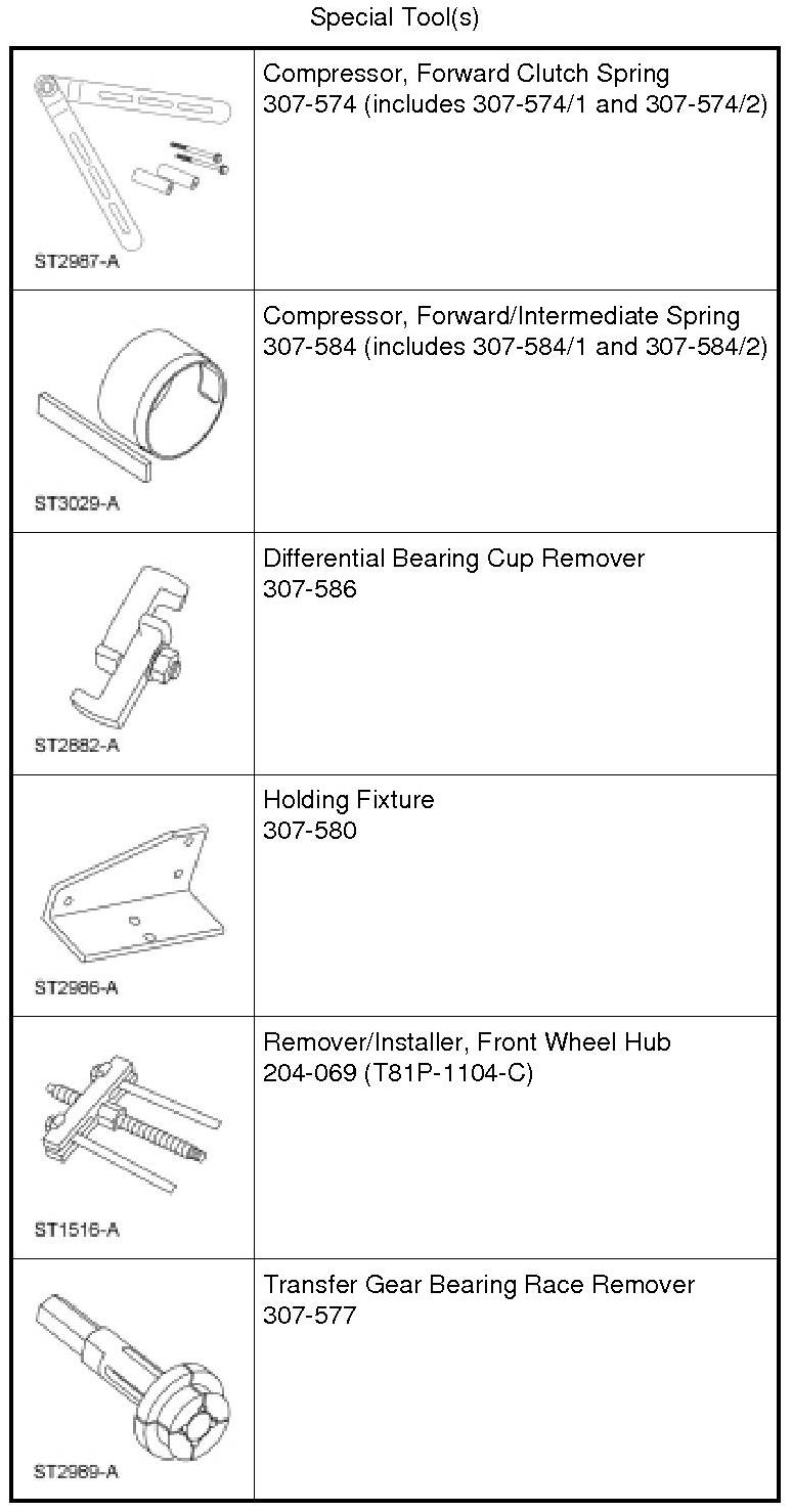 55. If the transaxle case side transfer shaft bearing cup is damaged, install Transfer Gear Bearing Race Remover 307-577 on the bearing cup.