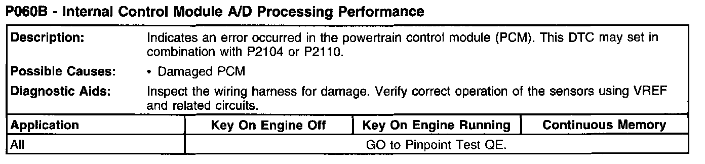 Note 1: DTC P1000 is ignored in the key ON engine OFF (KOEO) and key ON engine running (KOER) self-tests. Disregard DTC P1000 and continue as directed.