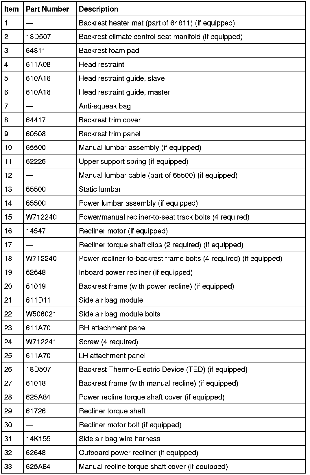 - If equipped with climate controlled seats, on assembly make sure there is no air gap between the backrest TED (Thermo-Electric Device) and the backrest foam pad.