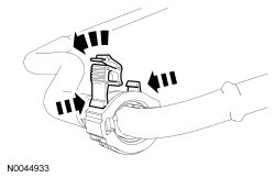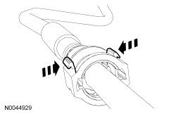 Squeeze the quick connect coupling retainer locking tabs to release the locking mechanism.