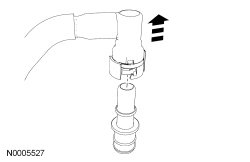 Depress the retainer clip and disconnect the quick connect coupling from the tube.