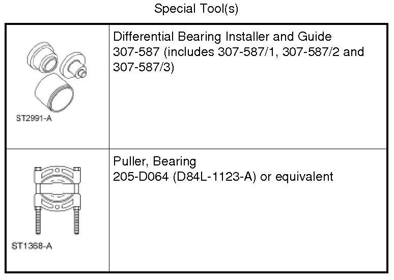 2. Using the Differential Bearing Installer and Guide 307-587 (307-587/2 and 307-587/3) and a press, install new transfer shaft bearings on the transfer shaft assembly.