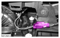 10. Remove the RH upper floor console side trim panel. Disconnect the power point electrical connector.