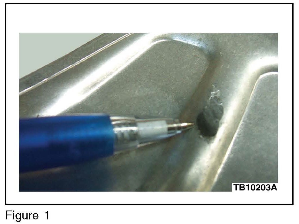 1. Inspect the roll restrictor heat shield for witness marks that contact was made with the engine roll restrictor-to-subframe retaining bolt head. (Figure 1)