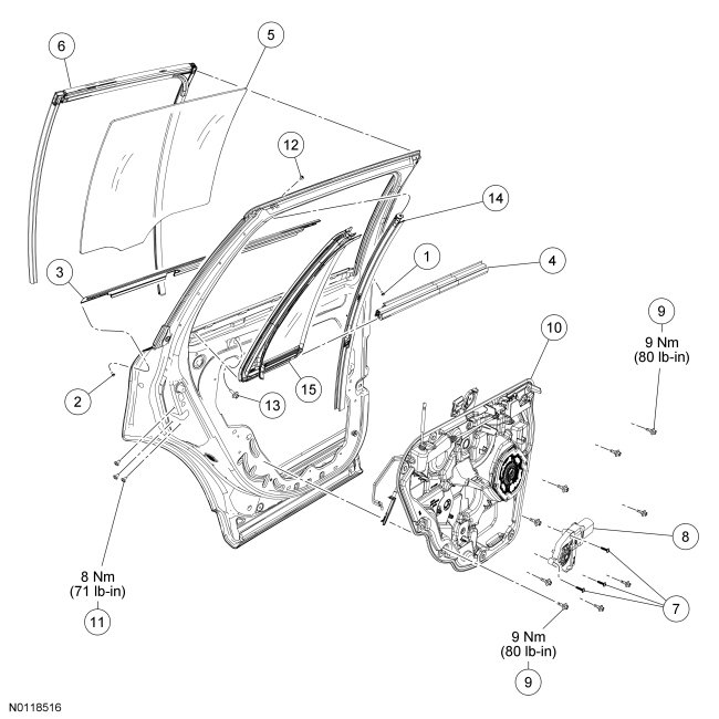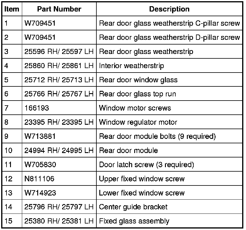 Glass, Frames and Mechanisms - Exploded View, Rear Door