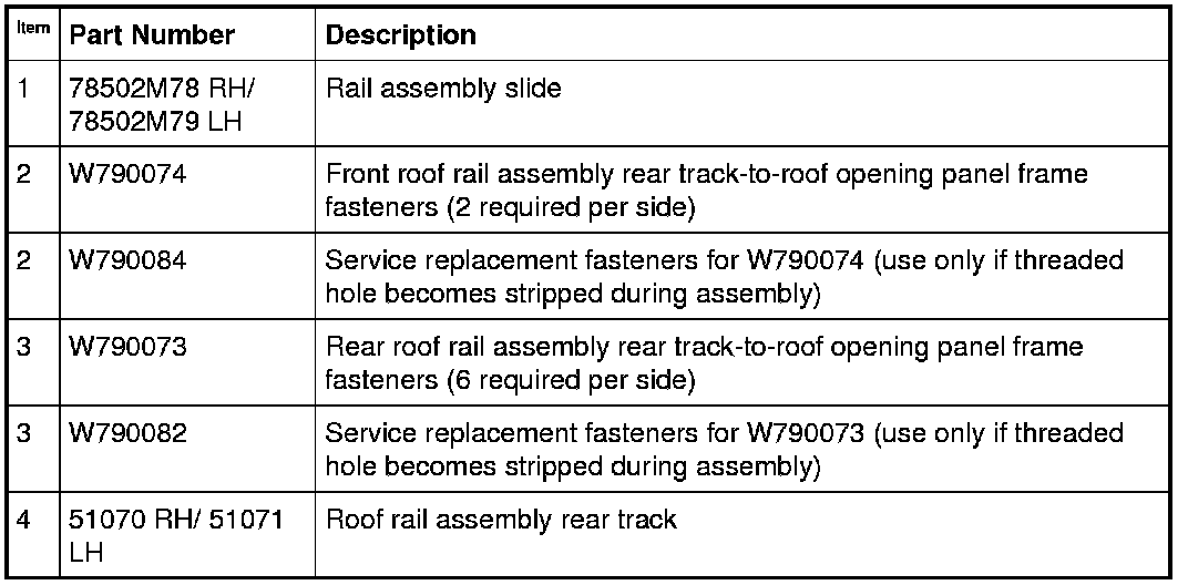Roof Rail Assembly Rear Track and Rail Assembly Slide