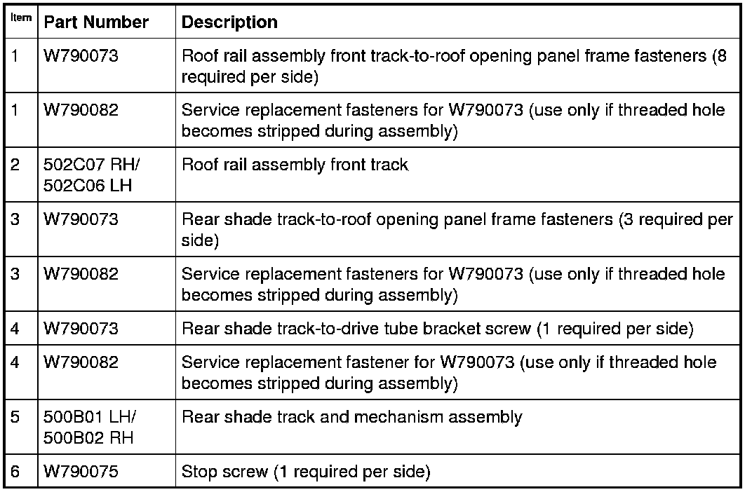 Roof Rail Assembly Front Track and Shade Track Mechanisms