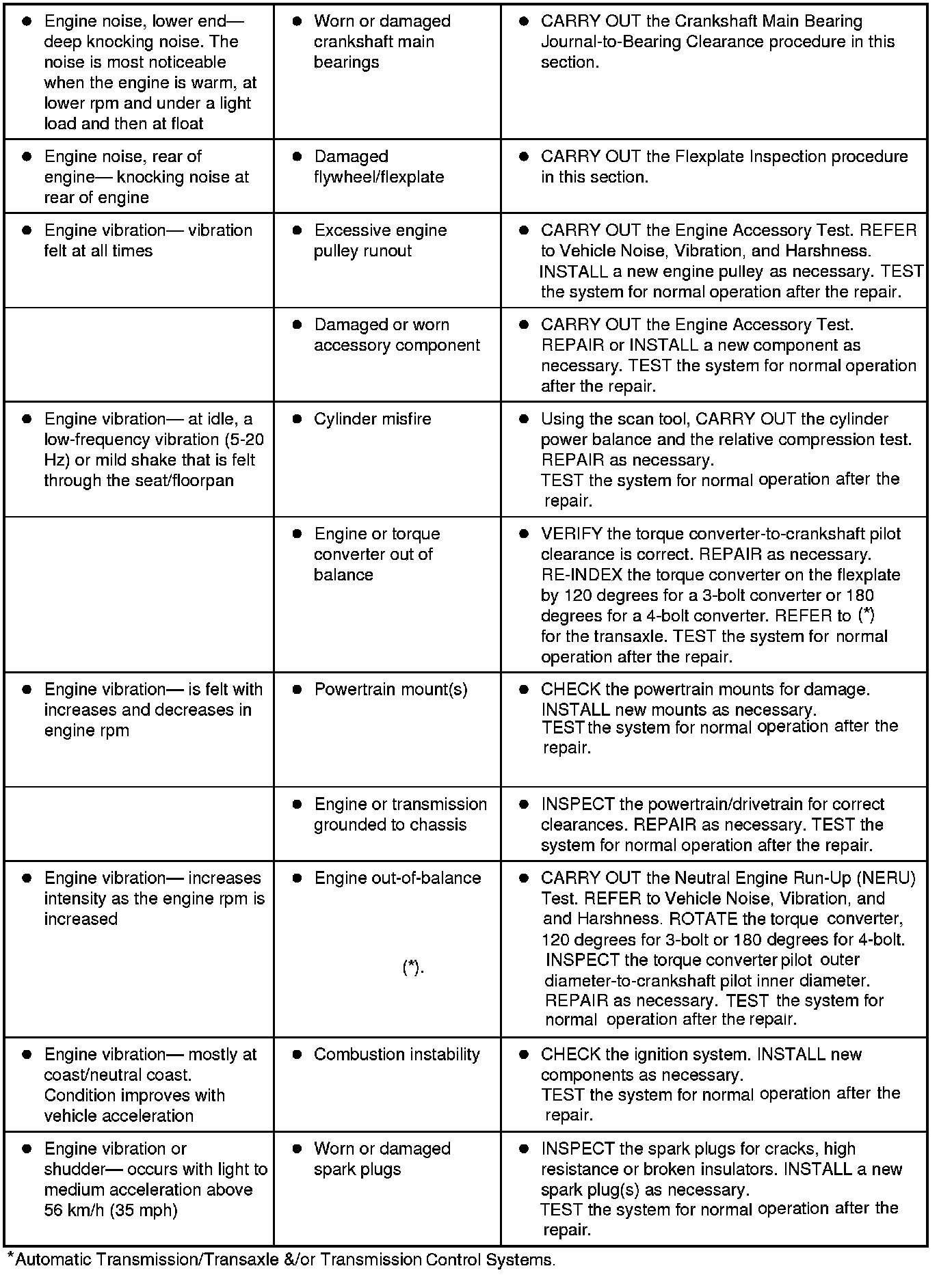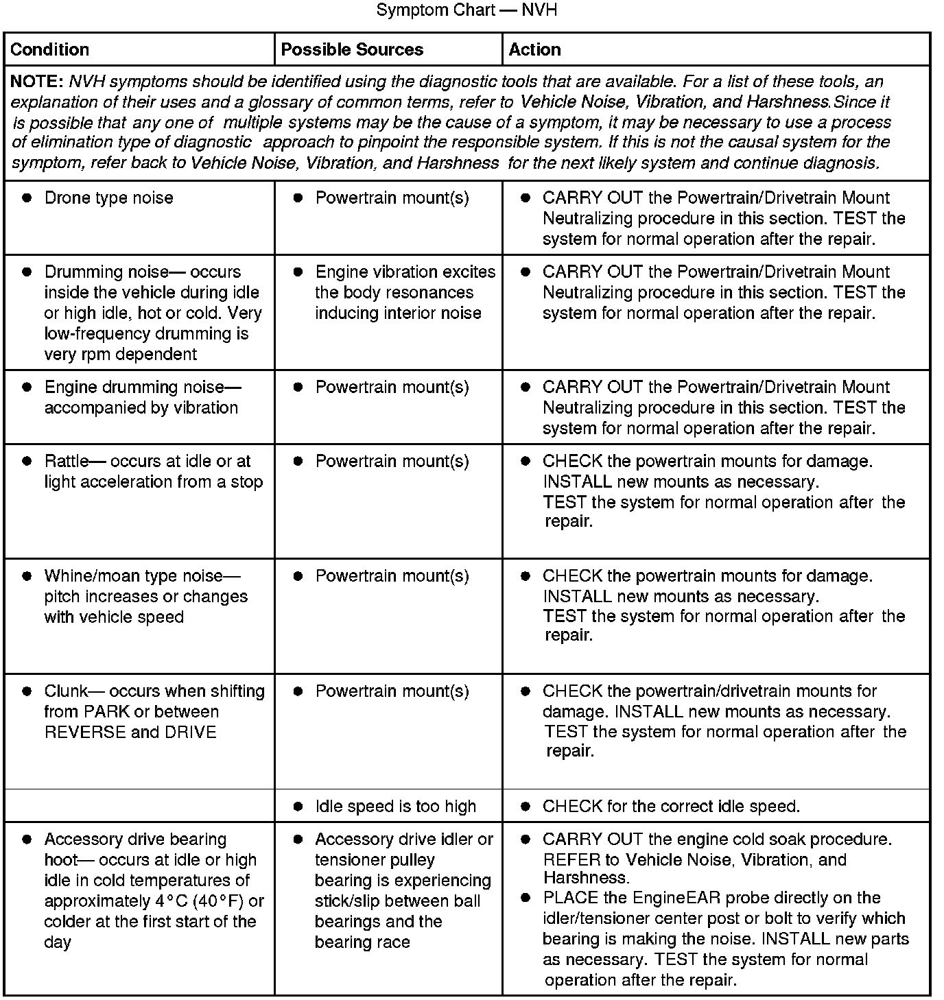 Symptom Chart - NVH