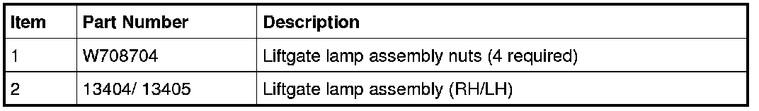 3. Remove the 4 liftgate lamp assembly nuts and the liftgate lamp assembly.