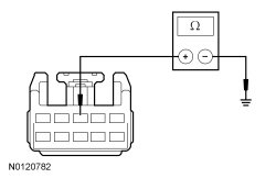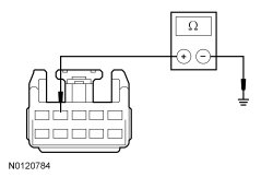 - Measure the resistance between floor shifter harness C3245-4, circuit GD115 (BK/GY) and ground.