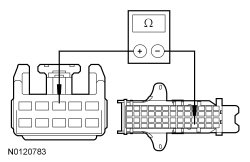- Measure the resistance between floor shifter harness C3245-3, circuit CET53 (BU/OG) harness side and ground.