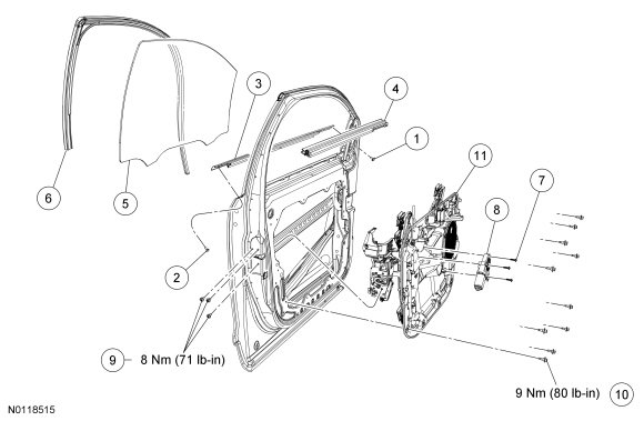 Glass, Frames and Mechanisms - Exploded View, Front Door