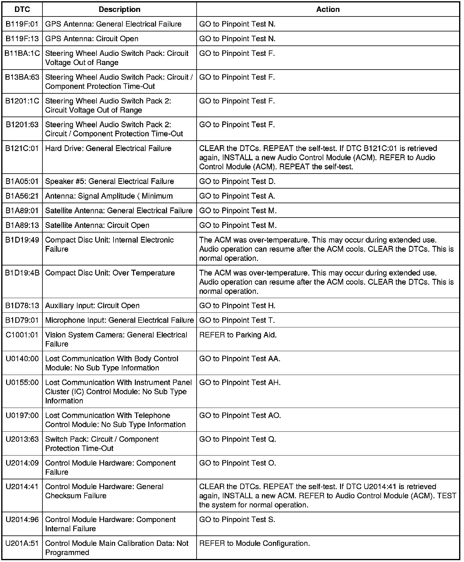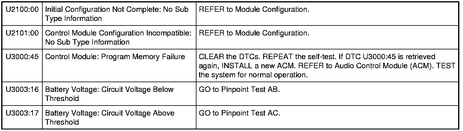 Audio Control Module (ACM) - With Navigation DTC Chart
