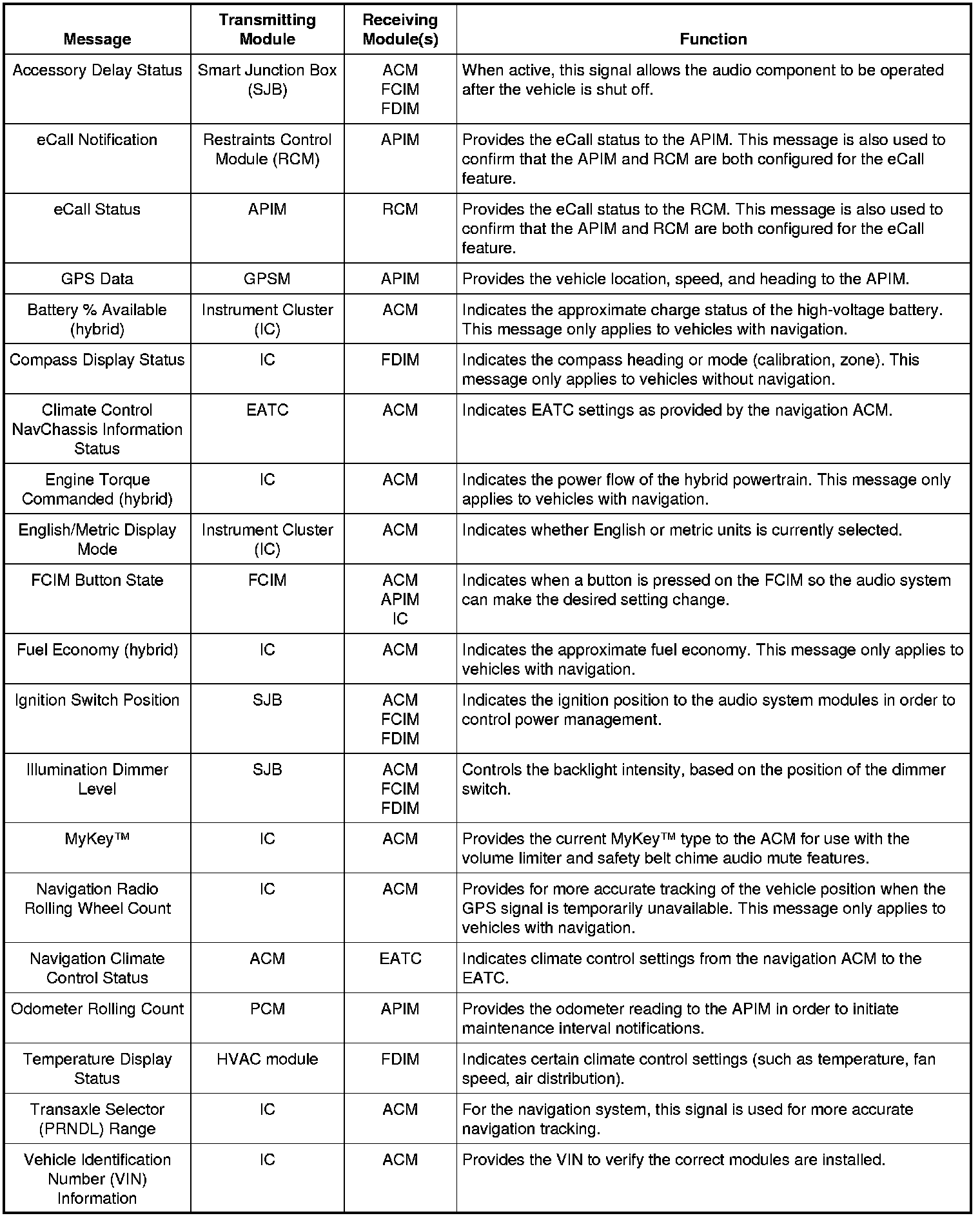The APIM communicates on the MS-CAN and High Speed Controller Area Network (HS-CAN). Communication with the scan tool is established through the HS-CAN.