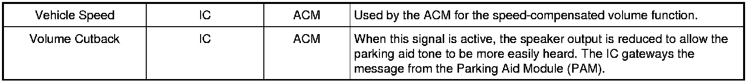 The Audio Control Module (ACM) can be operated with the ignition in RUN or ACC. The accessory delay feature allows the audio system to be operated for a preset period of time after the ignition is turned off and a front door has not been opened. The ACM sends AC voltage audio signals to the speakers or to the amplifier, depending on vehicle configuration. The ACM can produce its own DTCs, which can be communicated to the scan tool through the Medium Speed Controller Area Network (MS-CAN).