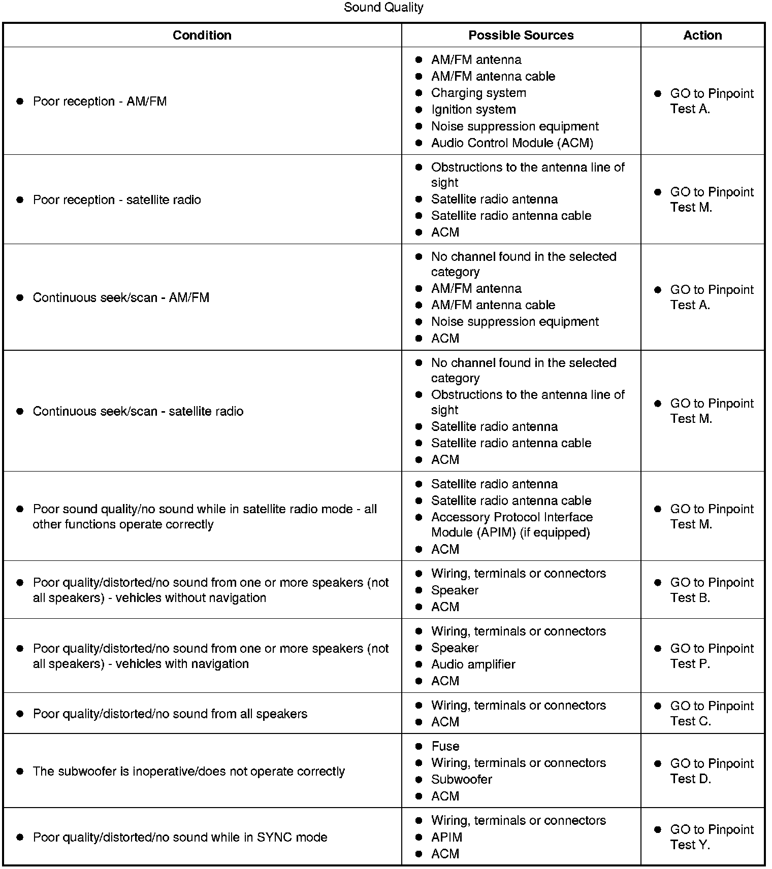 Symptom Chart - Sound Quality