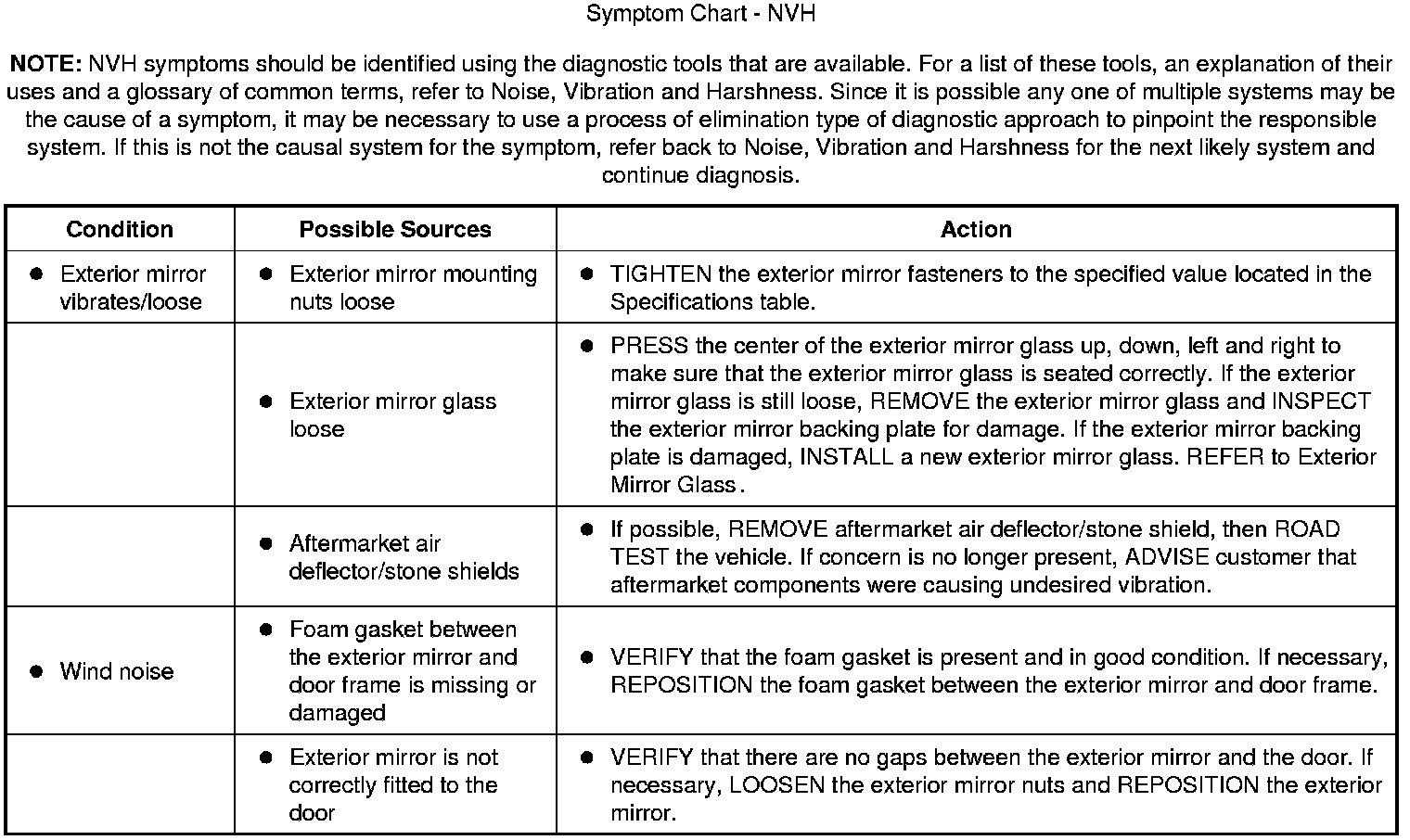 Symptom Chart - NVH