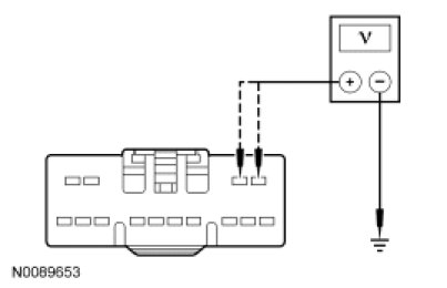 - Measure the voltage between the roof opening panel motor C921-1, circuit SBP04 (GN/RD), harness side and ground; and between roof opening panel motor C921-2, circuit CBP41 (BU), harness side and ground.