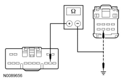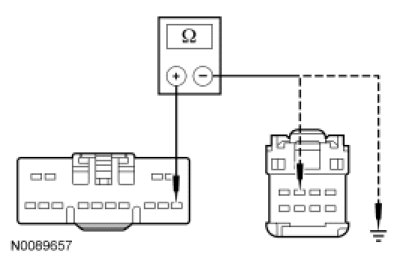 - Measure the resistance between the roof opening panel motor C921-4, circuit GD182 (BK/GY), harness side and ground.