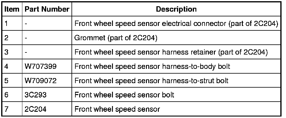 5. Remove the front wheel speed sensor harness-to-body bolt.