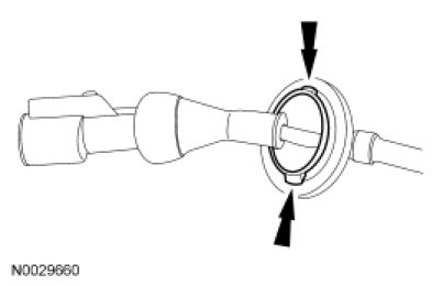 - When removing the body grommet, rotate the grommet into a position which allows the use of a small screwdriver to release the tabs on the underside of the body grommet. These 2 tabs are located at right angles to the sensor wire.