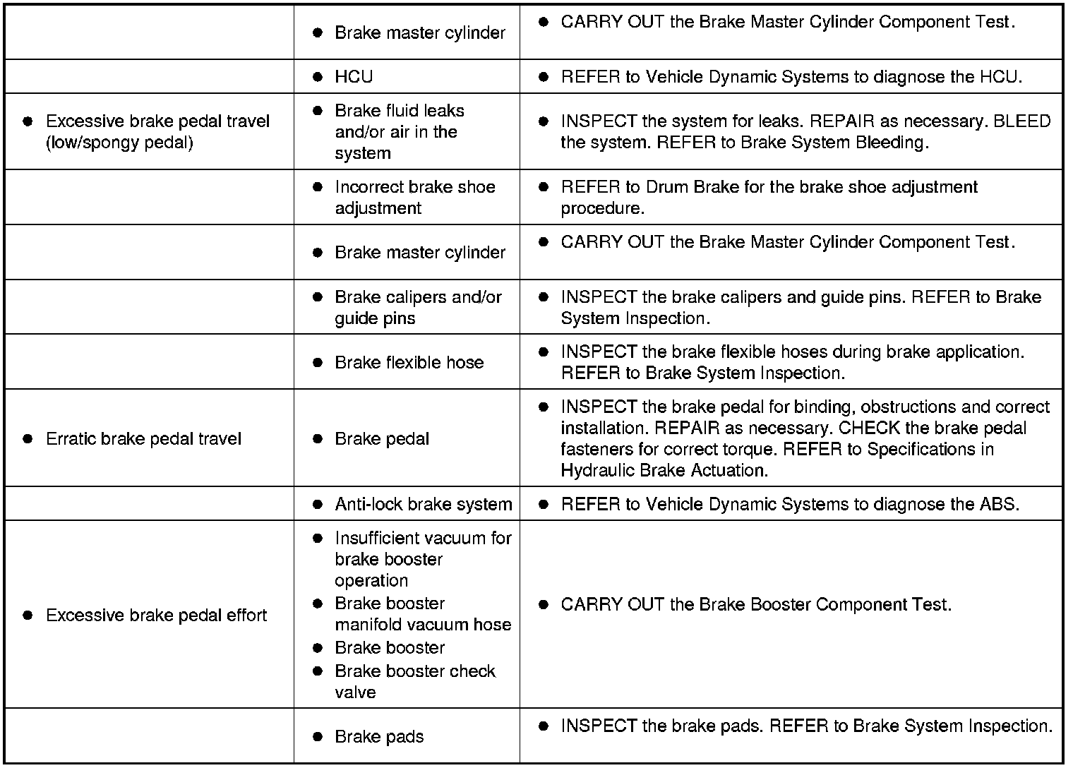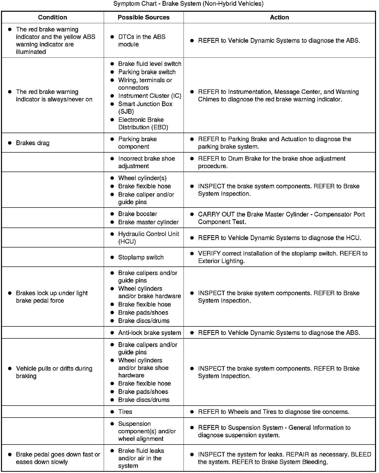 Symptom Chart - Brake System (Non-Hybrid Vehicles)