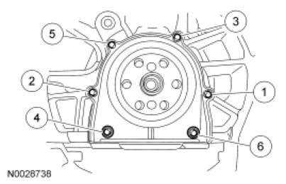 34. Tighten the crankshaft rear oil seal retainer bolts in the sequence shown.