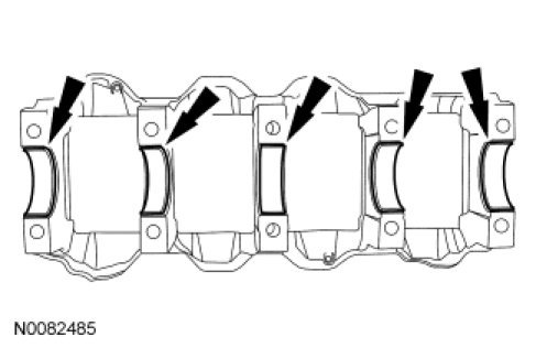 15. Lubricate the 10 main bearing beam side fit surfaces (front 2 shown) with clean engine oil.