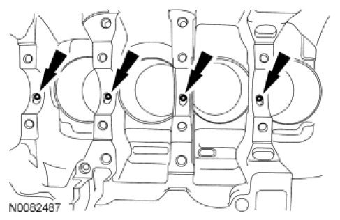 1. NOTE: If the oil squirters are being reused, they must be installed in the same location as marked during disassembly.