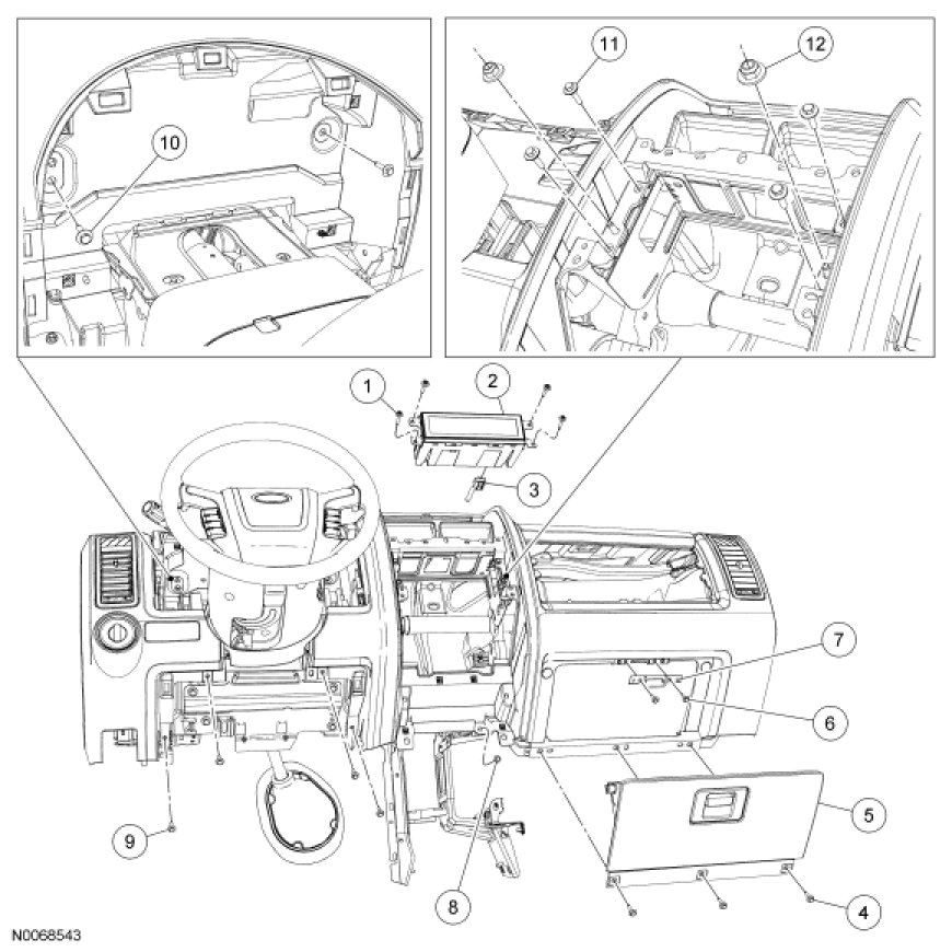 4. Remove the instrument panel. For additional information, refer to Instrument Panel and Console Instrument Panel.