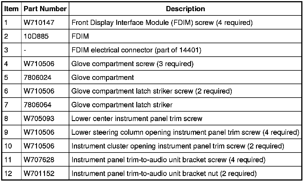 12. Remove the lower center instrument panel trim screw.