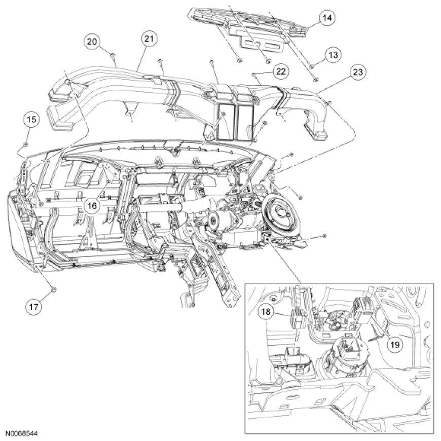 18. NOTE: The instrument panel trim will need to be positioned away from the instrument panel support to access the LH duct assembly upper center screw.