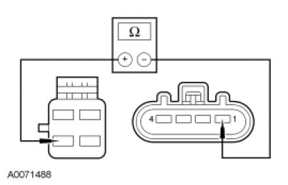 - Measure the resistance between blower motor C2004-1, circuit CH430 (VT/OG), harness side and blower motor resistor C293-2, circuit CH430 (VT/OG), harness side.