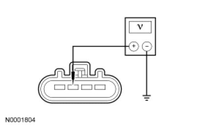 - Measure the voltage between blower motor speed control module C297-3, circuit VH101 (WH/VT), harness side and ground.