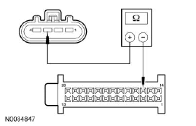- Measure the resistance between blower motor speed control module C297-3, circuit VH101 (WH/VT), harness side and HVAC module - DATC C2356B-16, circuit VH101 (WH/VT), harness side.